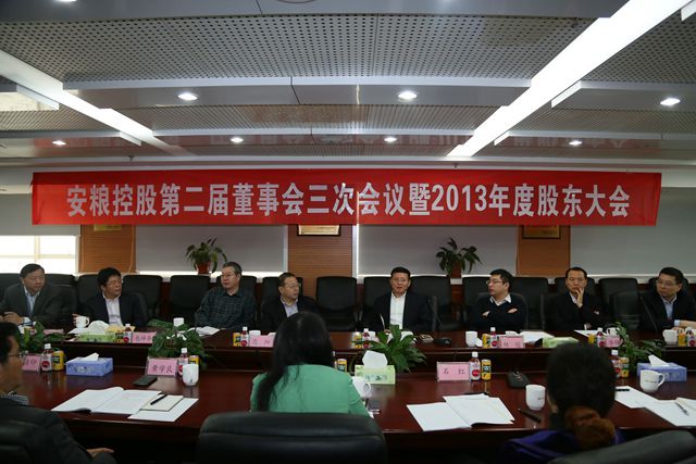 4月13日,公司召開安糧控股第二屆董事會(huì)第三次會(huì)議暨2013年度股東大會(huì)。公司董事會(huì)成員包祥華、桂冠、李錦鐸、方宗友、曹訓(xùn)立、宋恩君參加會(huì)議。監(jiān)事會(huì)成員陳素萍、黃學(xué)良、石紅及經(jīng)營(yíng)層成員儲(chǔ)潔印、潘冬生、張來往列席會(huì)議。國(guó)貿(mào)集團(tuán)范陽董事長(zhǎng)應(yīng)邀出席會(huì)議。會(huì)議由董事長(zhǎng)主持。