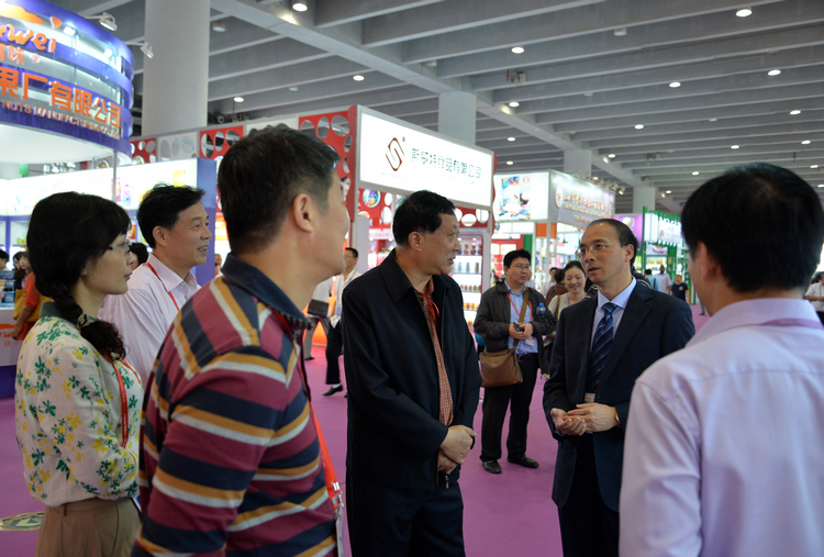 省商務廳王曉陽副巡視員(中)巡視公司展位