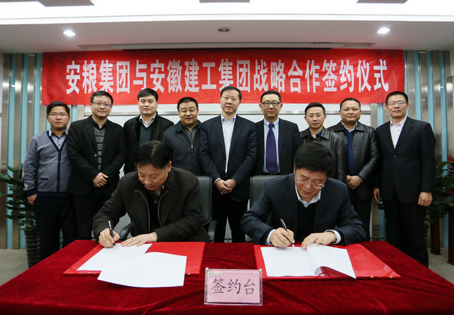 12月3日,安糧集團(tuán)與安徽建工集團(tuán)在盛安廣場(chǎng)22樓會(huì)議室簽署戰(zhàn)略合作協(xié)議,公司領(lǐng)導(dǎo)方宗友與安徽建工集團(tuán)副總經(jīng)理許克順?lè)謩e代表各自公司簽約并講話。安糧控股副總裁曹訓(xùn)立出席,安糧集團(tuán)總經(jīng)理助理周洪主持簽約儀式。