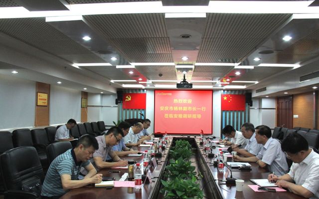 8月9日上午,安慶市人民政府楊林副市長一行蒞臨安糧調(diào)研考察。國貿(mào)集團(tuán)黨委副書記、總經(jīng)理包祥華,安糧集團(tuán)黨委委員、安糧控股副總裁曹訓(xùn)立等在22樓會議室熱情接待了楊副市長一行,并舉行座談。安慶市商務(wù)局、安慶經(jīng)濟(jì)開發(fā)區(qū)管委會、安慶保稅物流中心有關(guān)負(fù)責(zé)人及安糧實(shí)業(yè)負(fù)責(zé)人等參加座談會。