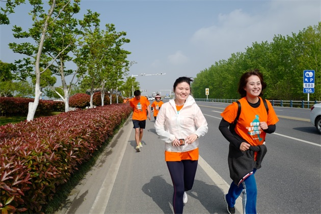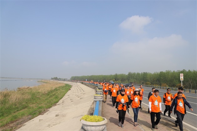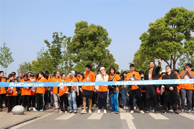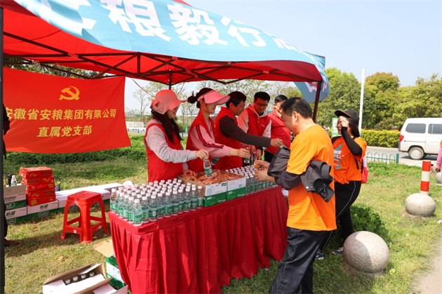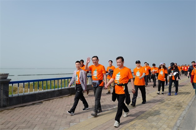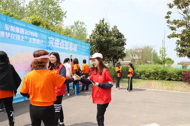 一路上,統(tǒng)一著裝的毅行隊伍如一股橙色的春潮,激蕩在碧波萬頃、楊柳接岸的巢湖之濱。伴著融融春日,吹著習(xí)習(xí)微風(fēng),毅行隊伍一邊暢享行走的樂趣,一邊欣賞大美巢湖的秀麗春色,一邊笑談工作或生活的點滴。上午10點5分,來自安糧實業(yè)的薛寶第一個沖破終點線,隨后,其他毅行者也陸續(xù)抵達(dá)終點。大家在留言墻上簽名并合影留念,一張張笑臉洋溢著成功的喜悅。
