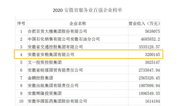 安糧集團位列安徽省服務業(yè)百強企業(yè)第4位