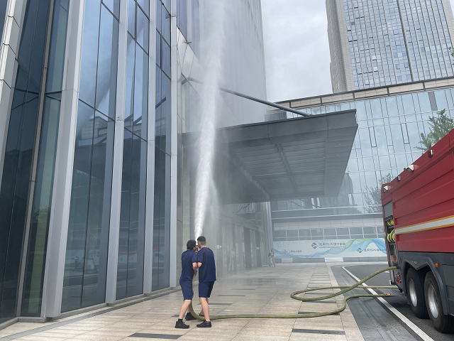 6月24日下午3時,消防應(yīng)急演練總指揮下達演練開始指令。隨著煙霧彈在辦公樓內(nèi)拋擲,煙霧觸發(fā)安糧中心辦公樓火警警報,頓時消防警報和消防警鈴響起。隨后各小組迅速按照部署展開滅火救援行動,消防和應(yīng)急救援隊員有序引導(dǎo)員工緊急疏散撤離至避難層,緊接著包河區(qū)應(yīng)急救援大隊消防救援車輛到達現(xiàn)場,開展了火情偵查、外圍滅火等系列滅火救援行動。整個演練過程中,各小組配合默契、分工有序,圓滿完成了緊急報警、警戒疏散、醫(yī)療救護和滅火救援等演練環(huán)節(jié),及時排除了火災(zāi)險情,有效達到了演練目的和預(yù)期效果。