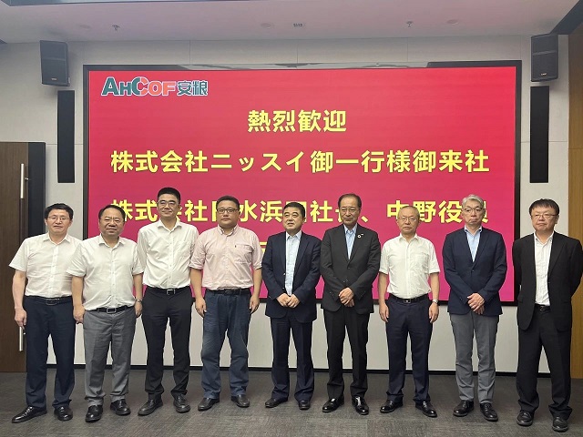 7月1日,海螺集團(tuán)副總經(jīng)理王建超、安徽國(guó)貿(mào)董事長(zhǎng)何傳友、常務(wù)副總經(jīng)理陶軍、安糧集團(tuán)董事長(zhǎng)吳國(guó)杰、總裁楊曉剛熱情接待了日水浜田社長(zhǎng)一行,并在安糧中心32樓召開座談會(huì)。會(huì)上,王建超首先對(duì)日水社長(zhǎng)一行的來訪表示歡迎。王建超表示日水是安糧的重要客戶,為安糧對(duì)日貿(mào)易的發(fā)展做出了積極貢獻(xiàn),希望能繼續(xù)強(qiáng)化合作,充分發(fā)揮日水種植、養(yǎng)殖和產(chǎn)品研發(fā)技術(shù)優(yōu)勢(shì),立足國(guó)內(nèi)市場(chǎng),加工適銷對(duì)路的產(chǎn)品,國(guó)內(nèi)國(guó)際兩個(gè)市場(chǎng)一起抓。同時(shí)希望能夠借鑒日水預(yù)制食品行業(yè)的先進(jìn)經(jīng)驗(yàn),重點(diǎn)拓展國(guó)內(nèi)預(yù)制菜市場(chǎng)。浜田社長(zhǎng)表示日水和安糧的合作已有38年歷史,安糧也是日水進(jìn)軍中國(guó)市場(chǎng)后合作的第一批企業(yè),日水對(duì)海螺集團(tuán)、安徽國(guó)貿(mào)的企業(yè)實(shí)力和行業(yè)影響力十分贊賞,對(duì)安糧產(chǎn)品的品質(zhì)十分信任。浜田社長(zhǎng)重點(diǎn)指出安糧新產(chǎn)品——調(diào)理南瓜產(chǎn)品在日本市場(chǎng)十分暢銷,希望日水研發(fā)團(tuán)隊(duì)和安糧工廠共同開發(fā)更多的調(diào)理蔬菜產(chǎn)品。