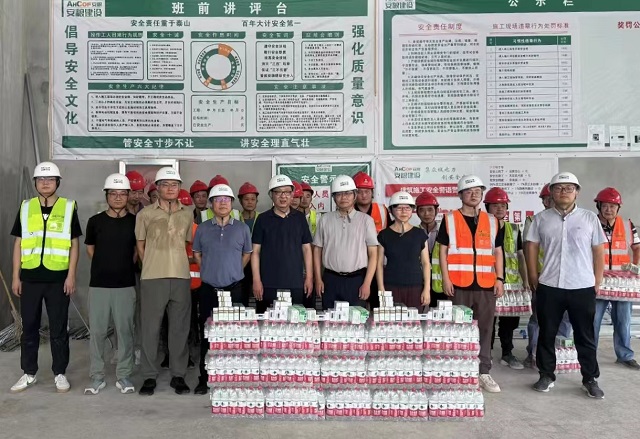 炎炎夏日,酷暑高溫,為切實做好職工夏季防暑降溫工作,用心用情關(guān)愛一線職工,8月2日,安糧集團工會開展“關(guān)愛職工,夏送清涼”活動,工會主席周洪帶隊來到安糧建設(shè)項目工地,對在高溫條件下作業(yè)的職工進行慰問,為奮戰(zhàn)在酷暑一線的工作人員送清涼、送關(guān)懷。