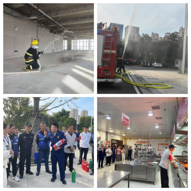 下午3時,消防應急演練總指揮下達演練開始指令。工作人員在預定地點放置煙霧彈,觸發(fā)火災報警,模擬火情發(fā)生場景。安糧中心辦公樓火警警報鳴響,全體職工迅速進入緊急疏散狀態(tài),各樓層消防和應急救援隊員迅速反應,有序引導職工從安全出口撤離到避難層。同時,消防隊員全副武裝,封控火場、撲滅火災。在火警解除后,救援大隊隊員開展滅火器使用教學、油鍋起火的預防和撲救等內(nèi)容,參與演習的物業(yè)、餐飲安全員們分別用不同的方式進行滅火實操,切身感受了正解與錯誤滅火的后果。